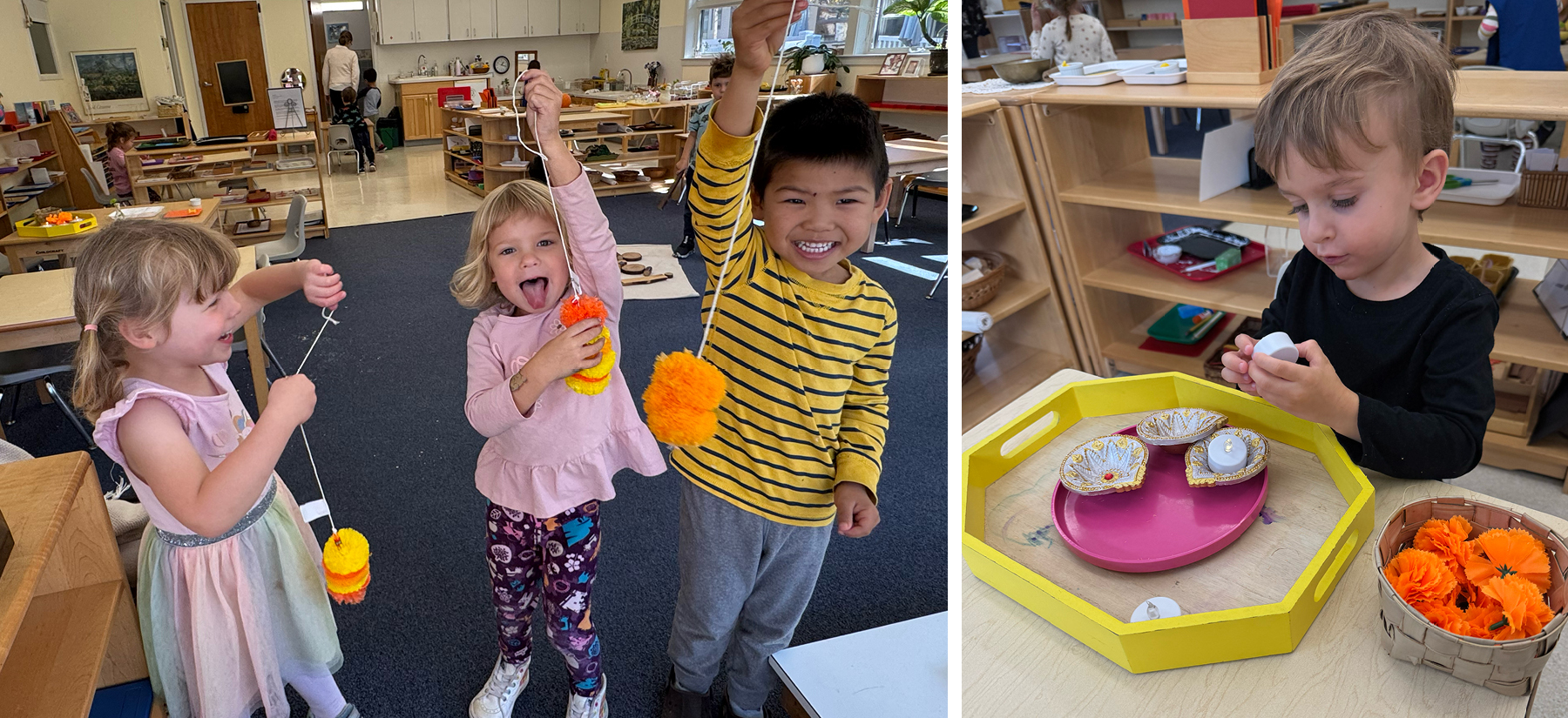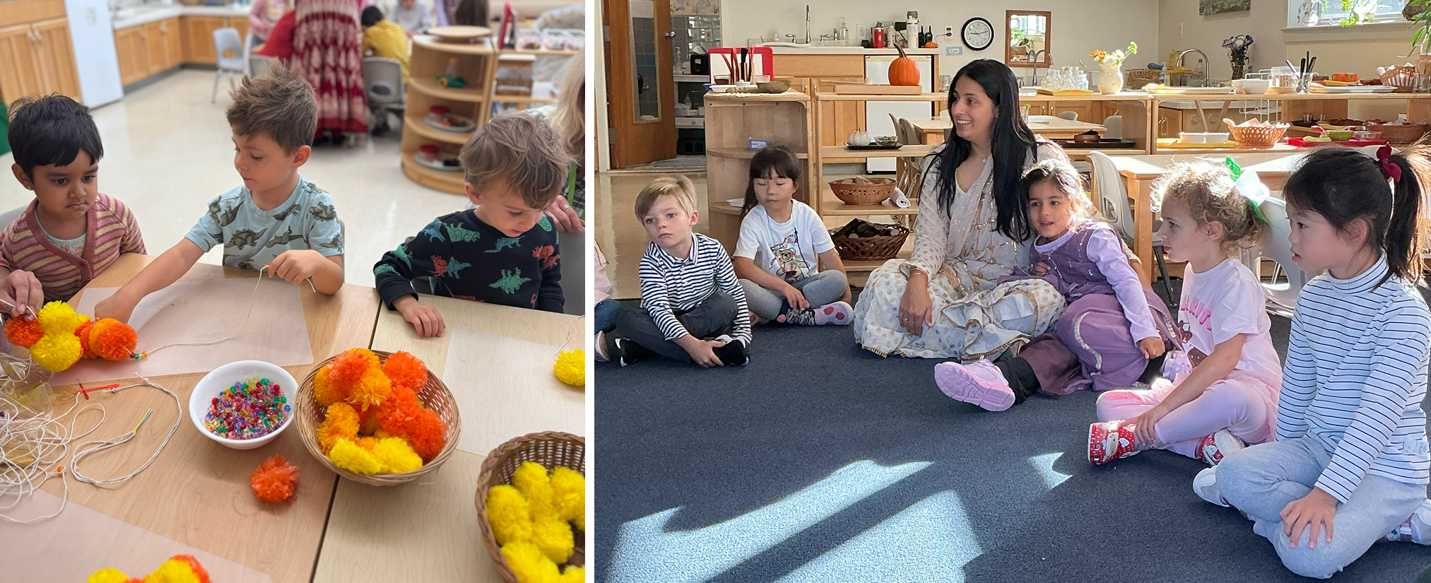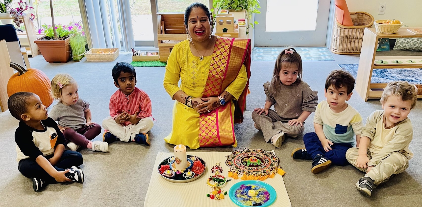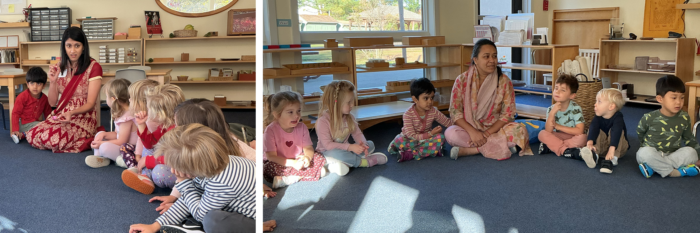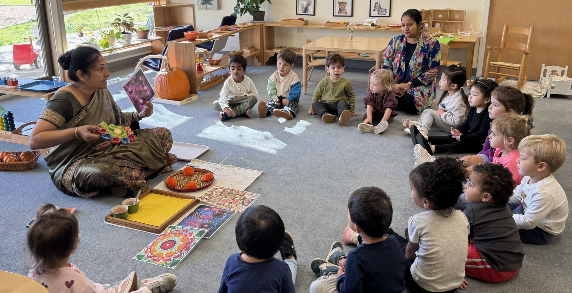 Primary children listened to books about Diwali and made colorful rangoli designs and Diyas. Parents visited the classroom and shared about their families’ Diwali traditions and celebrations.