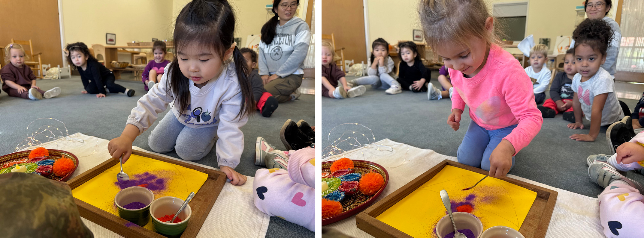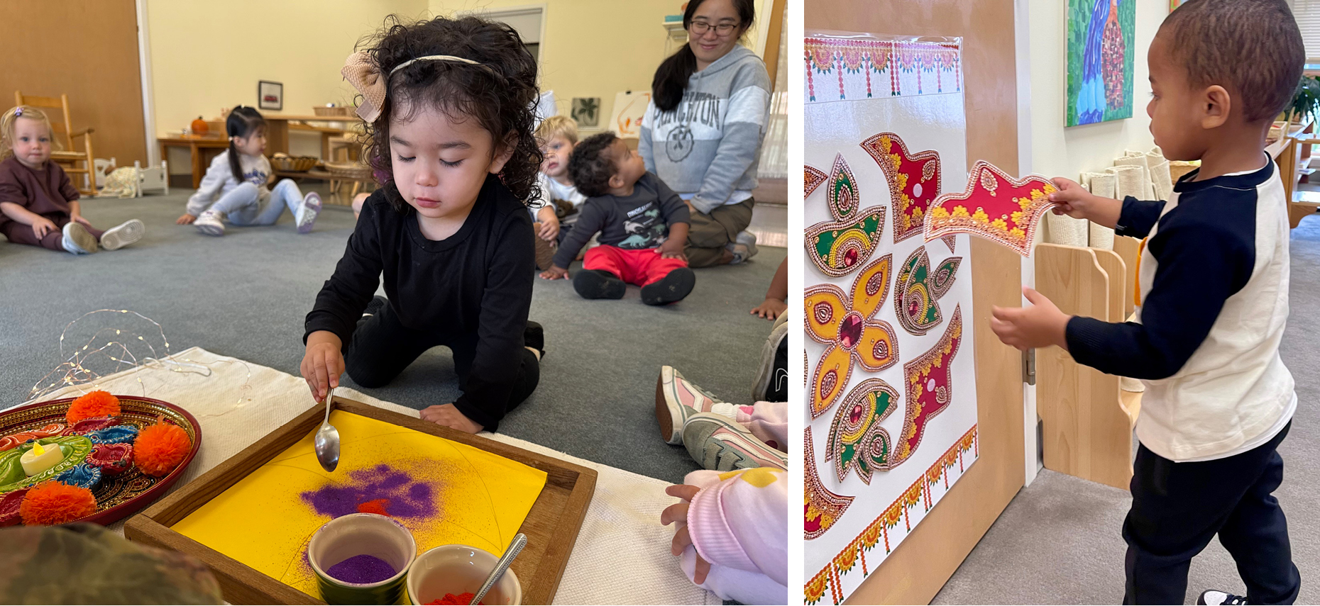 Toddler students enjoyed stories and presentations during circle time and made colorful rangoli designs.