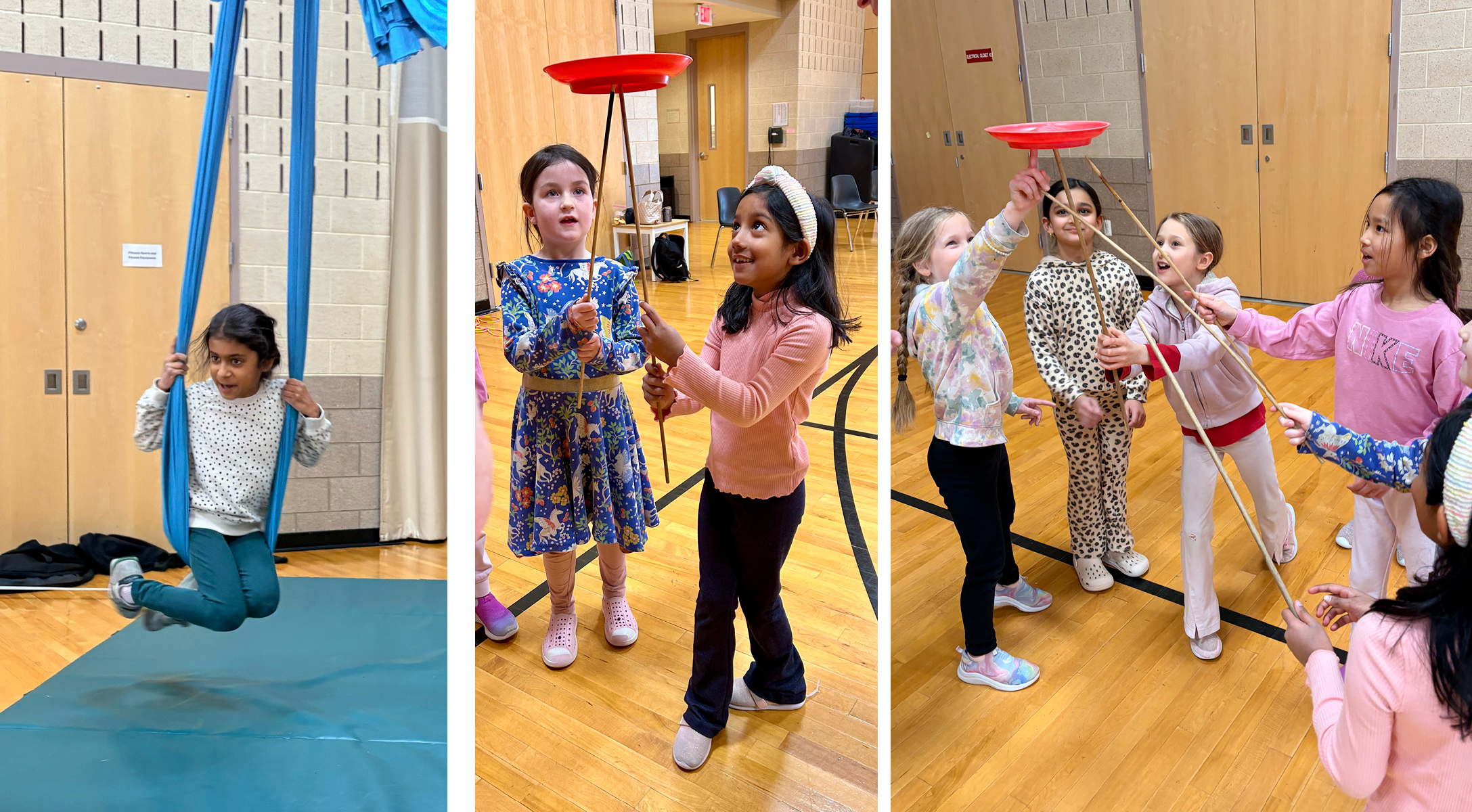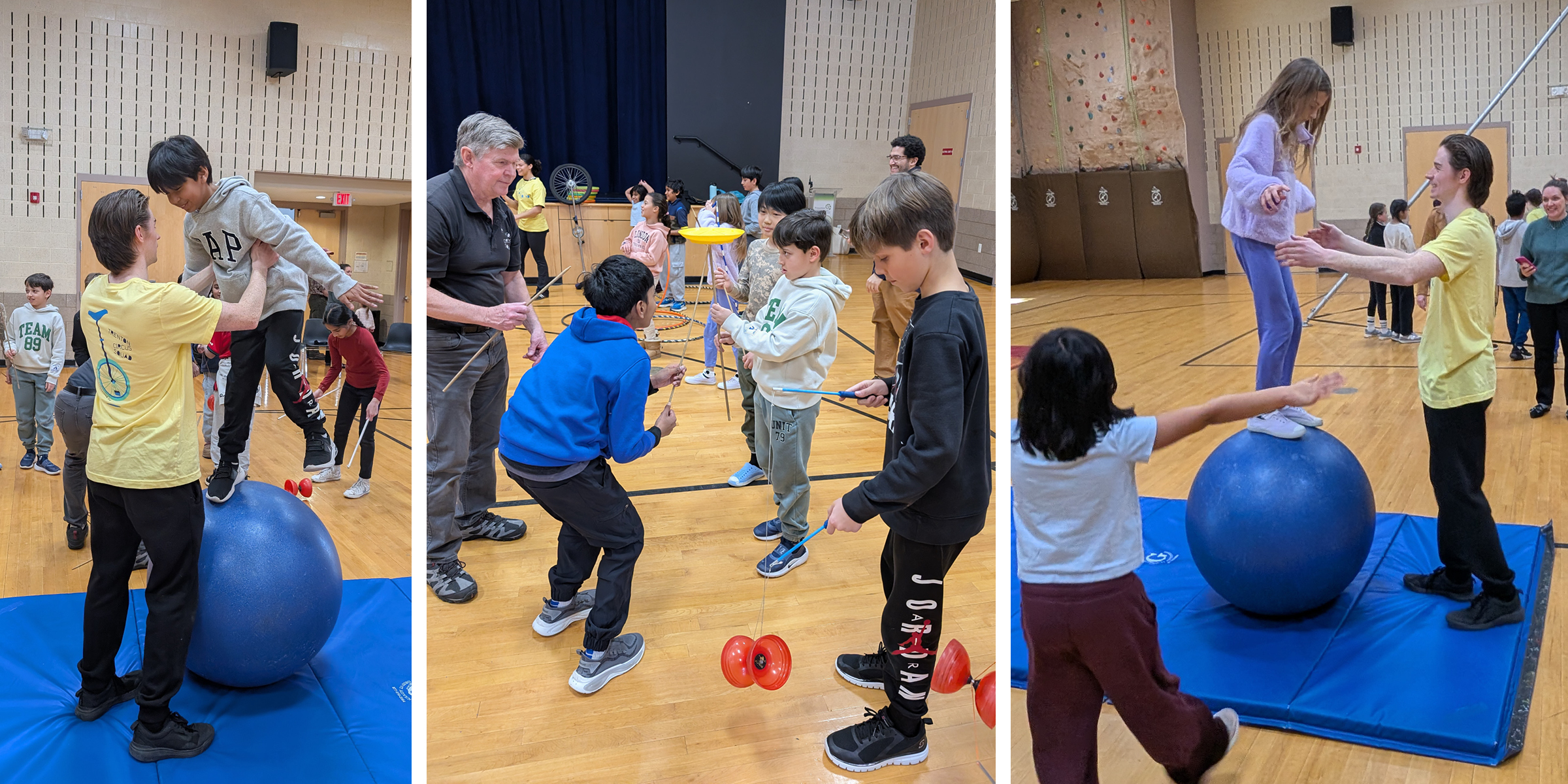 The students had a great time watching the performance. Upper school students had fun trying out some of the circus activities.