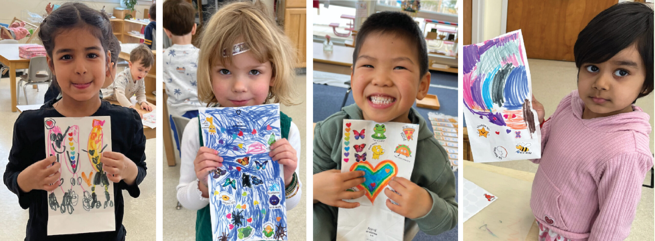 The Lower Elementary students hosted the event. As part of their presentation, the students read The Big Umbrella by Amy June Bates. Just as the big umbrella in the story stretches wide enough to shelter all who gather beneath it, they created their own Princeton Montessori School umbrella as a symbol of belonging and inclusion. Each student was invited to sign their name underneath the umbrella, showing that no matter our differences, we all fit here. The students also sang “Lean on Me”.