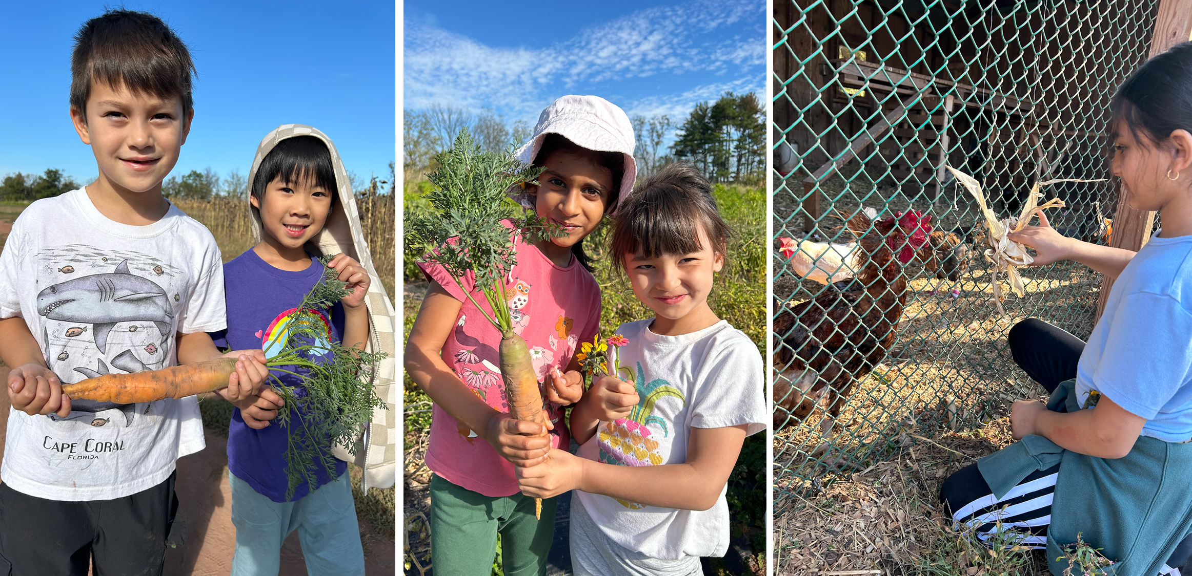 Students delighted in tasting fresh, organic lettuce and ground cherries right from the plant, and the visit ended with time spent caring for the farm’s chickens—feeding them and, for those who wished, giving them a gentle pat.