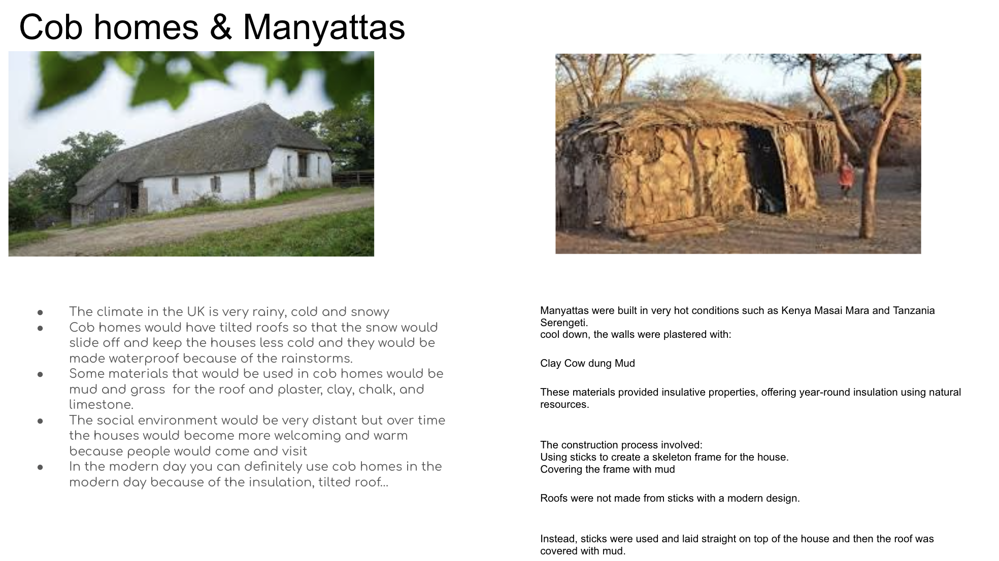 Week One: We began with an overview of the history of architecture, exploring what we can learn from ancient structures. Each student researched a chosen ancient dwelling, then partnered with a classmate to compare and contrast the two homes—focusing on local climate, natural resources, and social norms—before presenting their findings to the class.