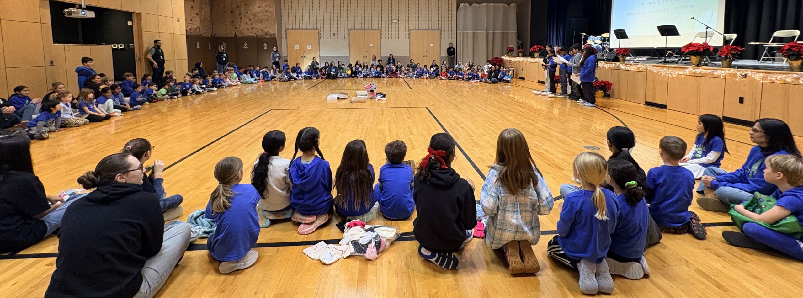 Primary through Middle School children gathered to celebrate our second School Spirit Day. The Upper Elementary students hosted the event. The 5th-grade students talked about our Community in Unity, highlighting our school-wide effort supporting the Parent Association’s Holiday Giving Drive for The Children’s Home Society of New Jersey. They talked about spreading warmth to others with the donations of hats, gloves, and mittens.