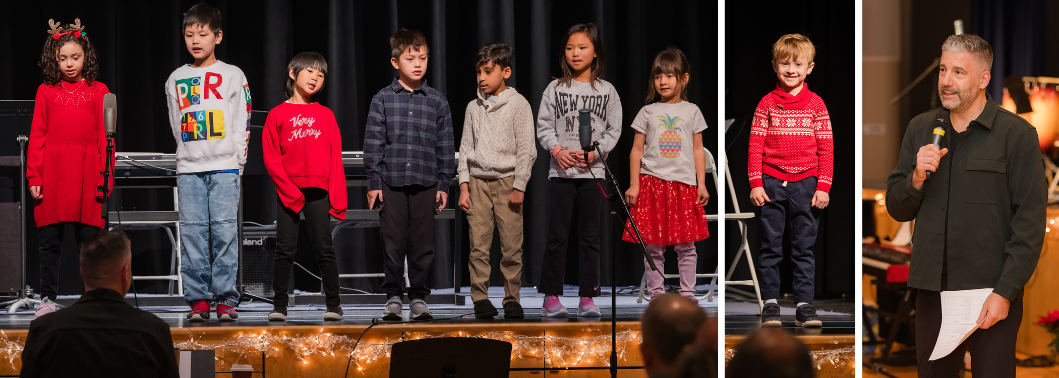 Lower Elementary students sang Let It Snow, Here In My House and Light A Candle For Peace.